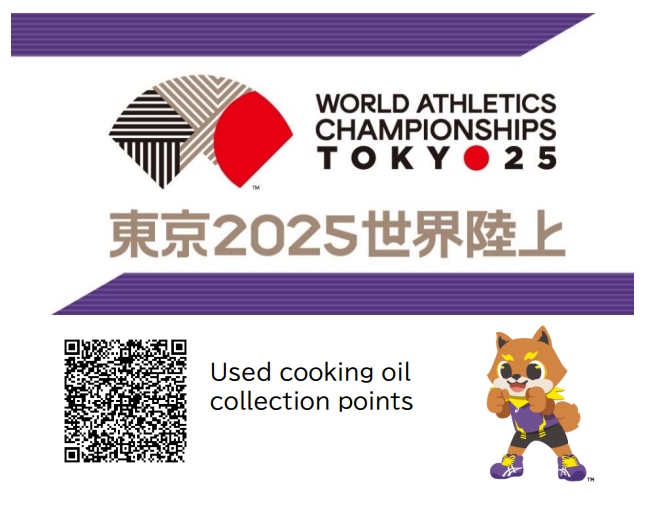 This overview of the WCH Tokyo 25 highlights key initiatives undertaken to ensure the event is environmentally and socially sustainable. Used cooking oil will be collected around the National Stadium. We appreciate your cooperation. Please check the collection points via the QR code!